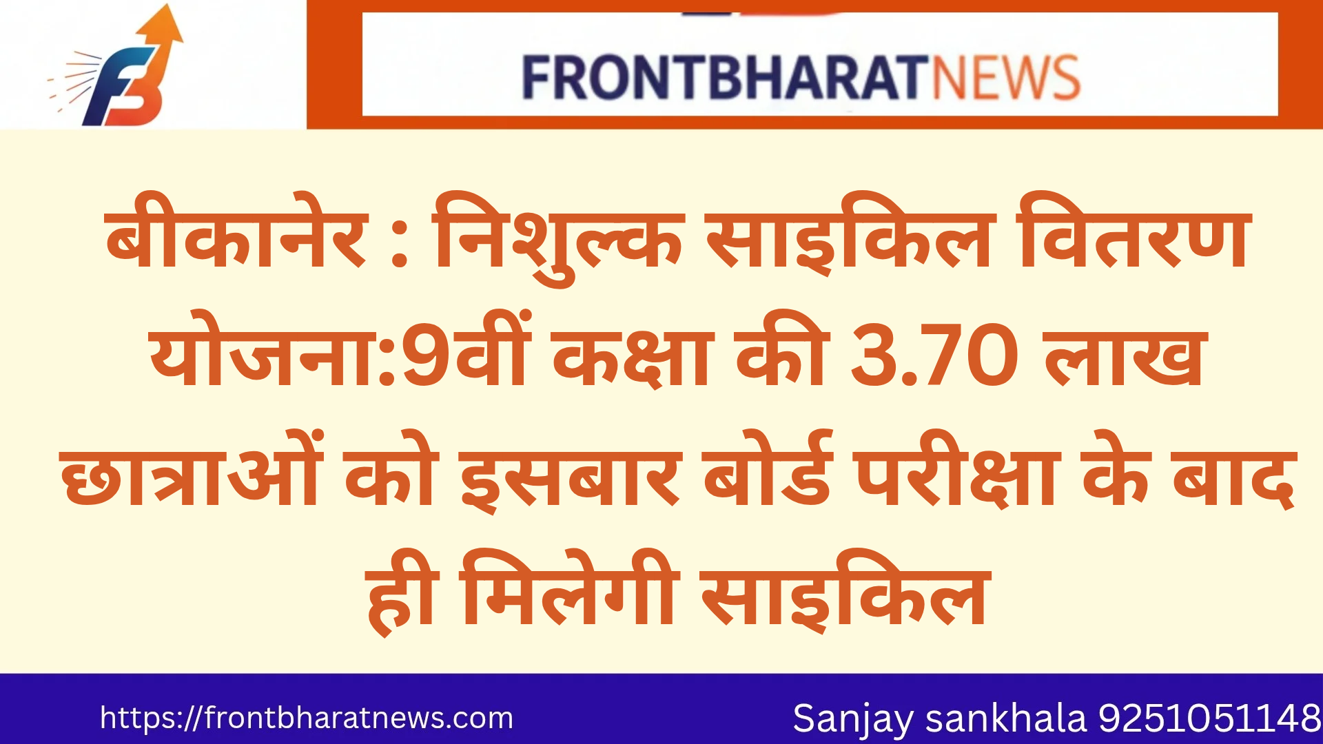 1. *बीकानेर : निशुल्क साइकिल वितरण योजना:9वीं कक्षा की 3.70 लाख छात्राओं को इसबार बोर्ड परीक्षा के बाद ही मिलेगी साइकिल*
