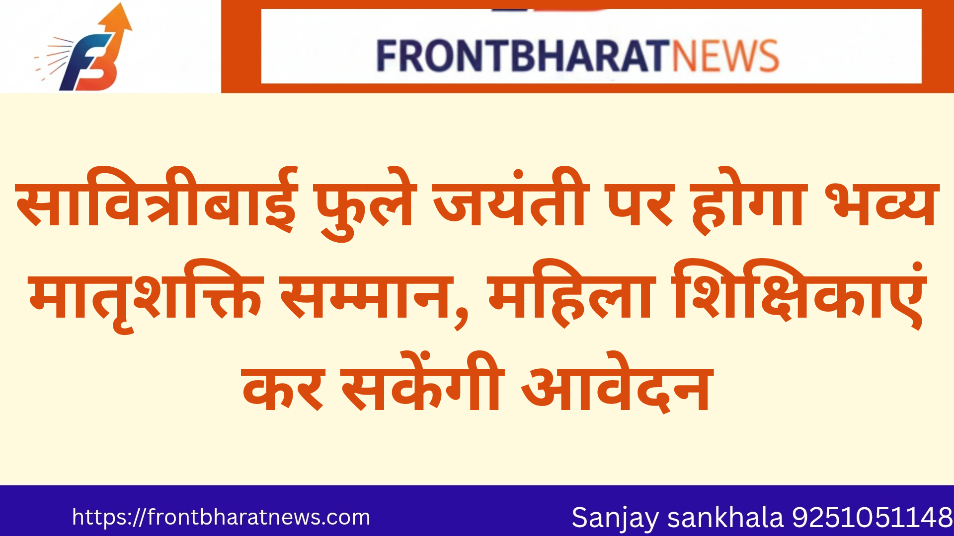 सावित्रीबाई फुले जयंती पर होगा भव्य मातृशक्ति सम्मान, महिला शिक्षिकाएं कर सकेंगी आवेदन