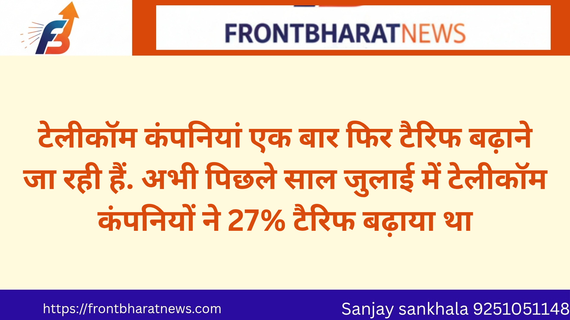 टेलीकॉम कंपनियां एक बार फिर टैरिफ बढ़ाने जा रही हैं. अभी पिछले साल जुलाई में टेलीकॉम कंपनियों ने 27% टैरिफ बढ़ाया था.
