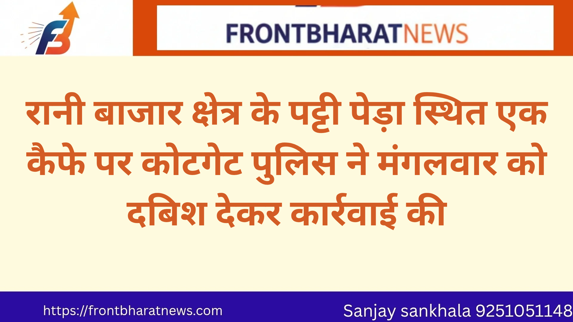 रानी बाजार क्षेत्र के पट्टी पेड़ा स्थित एक कैफे पर कोटगेट पुलिस ने मंगलवार को दबिश देकर कार्रवाई की