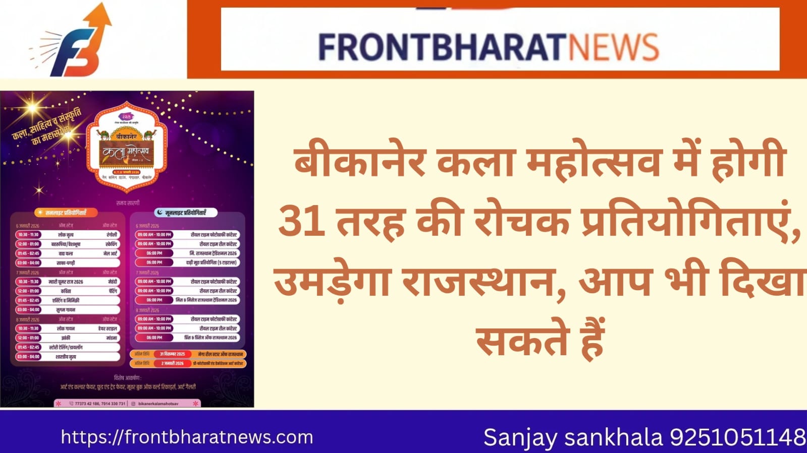 बीकानेर कला महोत्सव में होगी 31 तरह की रोचक प्रतियोगिताएं, उमड़ेगा राजस्थान, आप भी दिखा सकते हैं प्रतिभा, पढ़ें ख़बर