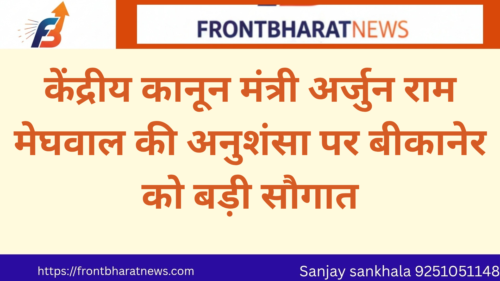 *बीकानेर: केंद्रीय कानून मंत्री अर्जुन राम मेघवाल की अनुशंसा पर बीकानेर को बड़ी सौगात*