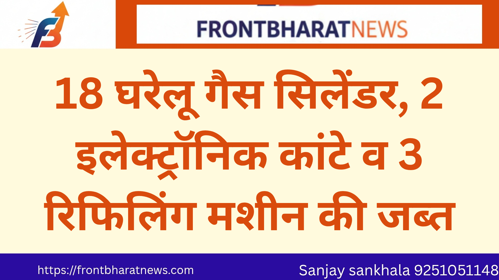 बीकानेर, 21 जनवरी। रसद विभाग ने बुधवार को घरेलू गैस की अवैध रिफिलिंग पर जिला रसद अधिकारी के नेतृत्व में कार्रेवाई की। जिला रसद अधिकारी श्री नरेश शर्मा ने बताया कि मुखबिर से प्राप्त के आधार पर पीबीएम अस्पताल के पास विपुल ठाकुर पुत्र महानंद ठाकुर की दुकान पर कार्रवाई की गई। जहाँ घरेलू गैस सिलेंडर की अवैध रिफिलिंग करते पाया गया । मौके से 18 घरेलू गैस सिलेंडर, 2 इलेक्ट्रॉनिक कांटे व 3 रिफिलिंग मशीन जब्त की गई।