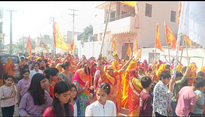 पुष्प वर्षा: मार्ग में जगह-जगह स्थानीय निवासियों द्वारा पालकी पर पुष्प वर्षा कर स्वागत किया गया।