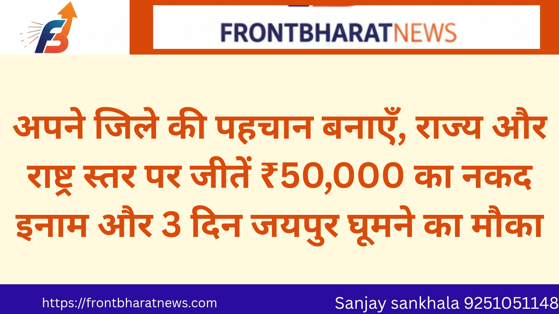 बीकानेर जिले के बच्चों के लिए बड़ा अवसर — अपने जिले की पहचान बनाएँ, राज्य और राष्ट्र स्तर पर जीतें ₹50,000 का नकद इनाम और 3 दिन जयपुर घूमने का मौका। बस बतानी है अपने जिले की कोई अनजानी बात।