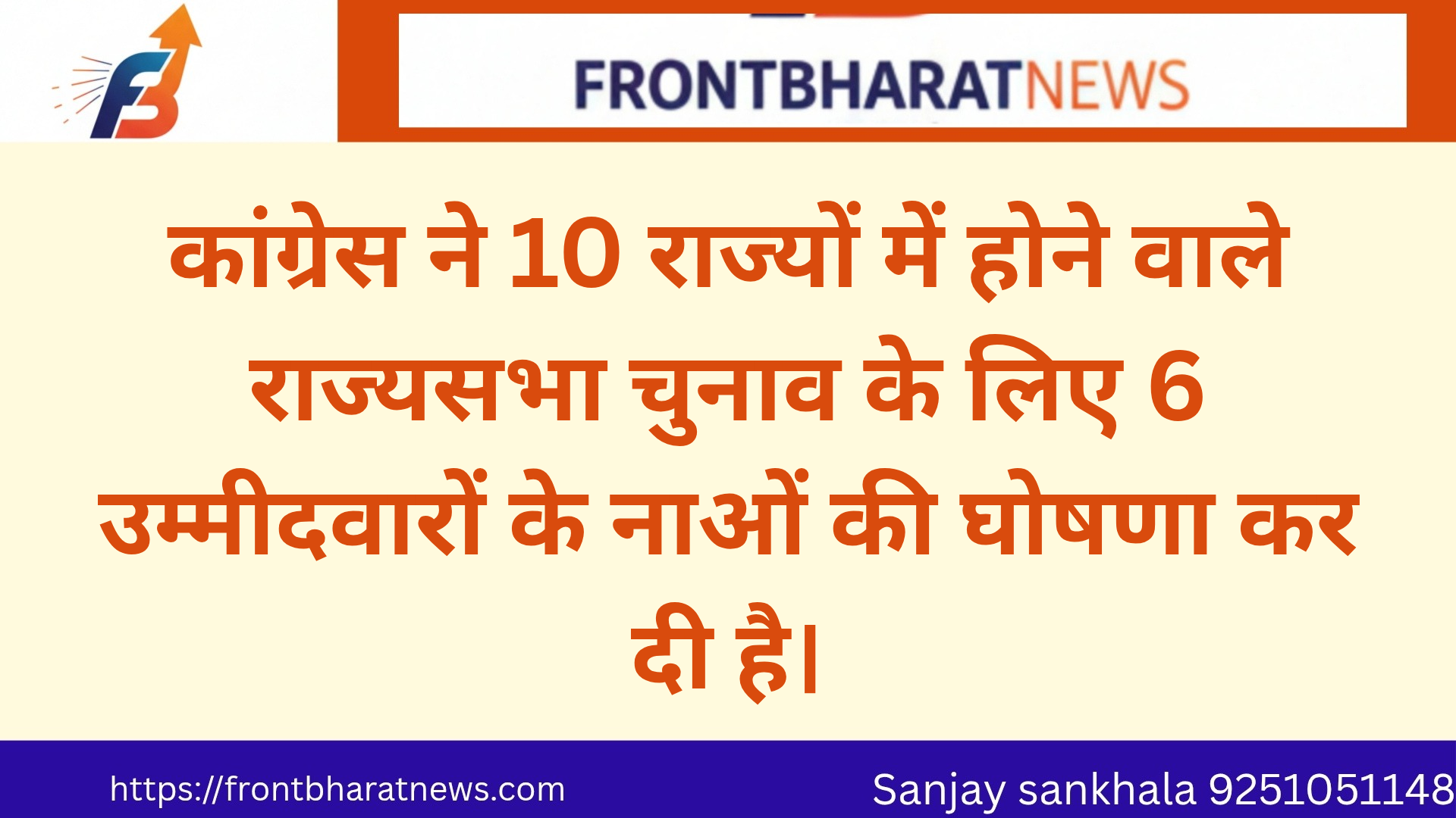 कांग्रेस ने गुरुवार को राज्यसभा चुनावों के लिए छह उम्मीदवारों की घोषणा की, जो कि 16 मार्च को 10 राज्यों में होने वाले हैं। इस बार कांग्रेस की लिस्ट में वरिष्ठ राज्यसभा सांसद और वकील अभिषेक मनु सिंघवी, तेलंगाना के मुख्यमंत्री के सलाहकार वेम नरेंद्र रेड्डी, फूलो देवी नेताम, करमवीर सिंह बौध, अनुराग शर्मा और एम क्रिस्टोफर तिलक शामिल हैं। सिंघवी को नरेंद्र रेड्डी के साथ तेलंगाना से पार्टी के राज्यसभा उम्मीदवार के रूप में फिर से नामित किया गया है।
