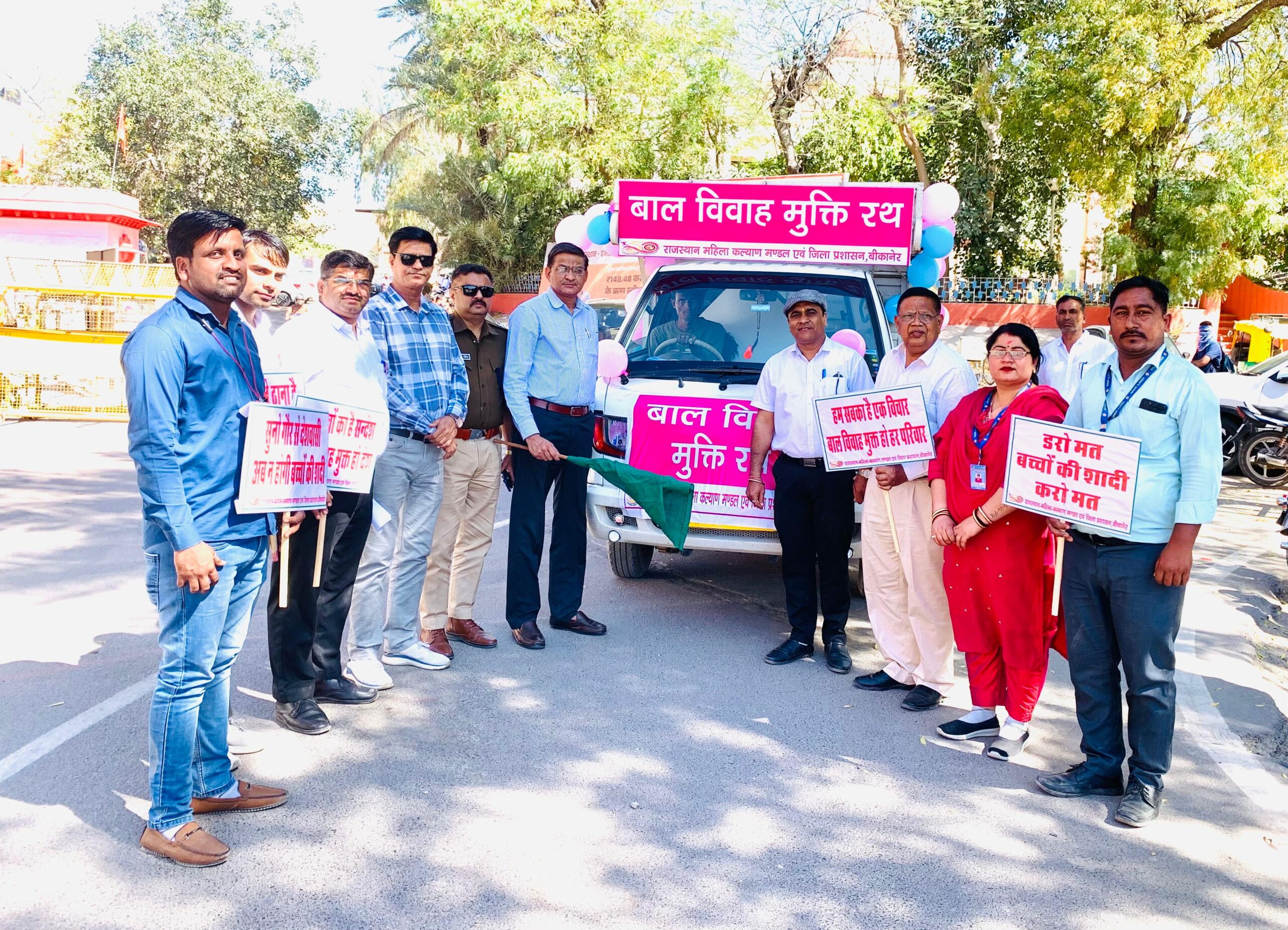 राजस्थान महिला कल्याण मंडल, जस्ट राइट्स फॉर चिल्ड्रन के जिला समन्वयक अमित कुमार ने बताया कि बाल विवाह मुक्त भारत अभियान के तहत बाल विवाह मुक्त भारत रथ यात्रा आगामी दिनों में जिले के अलग-अलग ब्लॉक क्षेत्रों में जाएगा। रथ के माध्यम से ऑडियो संदेश, पोस्टर, पंपलेट जनसंवाद एवं शपथ कार्यक्रम के द्वारा आम जन को जागरूक किया जाएगा व आमजन को बाल विवाह प्रतिषेध अधिनियम 2006 के तहत 18 वर्ष से कम आयु की लड़की व 21 वर्ष से कम आयु के लड़के की शादी नहीं करवाने व बाल विवाह के दुष्परिणाम जी बारे में जानकारी दी जाएगी व शपथ दिलाकर जागरूक किया जाएगा। बाल कल्याण समिति अध्यक्ष जुगल किशोर व्यास ने बाल विवाह के दुष्परिणामों की जानकारी दी गई व शपथ दिलवाई। बाल विवाह मुक्ति रथ खारा व बीछवाल गाँव, अंत्योदय नगर, नयाशहर आदि क्षेत्रों मे पहुंचा व ग्रामीणों द्वारा रथ का स्वागत किया गया। इस अवसर पर बाल कल्याण समिति से जंमजय व्यास, हाजरा बानो, सुनीता, किशोर न्याय बोर्ड से किरण गौड़, कमल, चाइल्ड हेल्पलाइन से प्रवेश व राजस्थान महिला कल्याण मंडल से पिंकी जनागल, बाबूलाल, न्याय मित्र अनिल तिवारी, गुरसेवक, एडवोकेट सुनील भाटी मौजूद रहे।