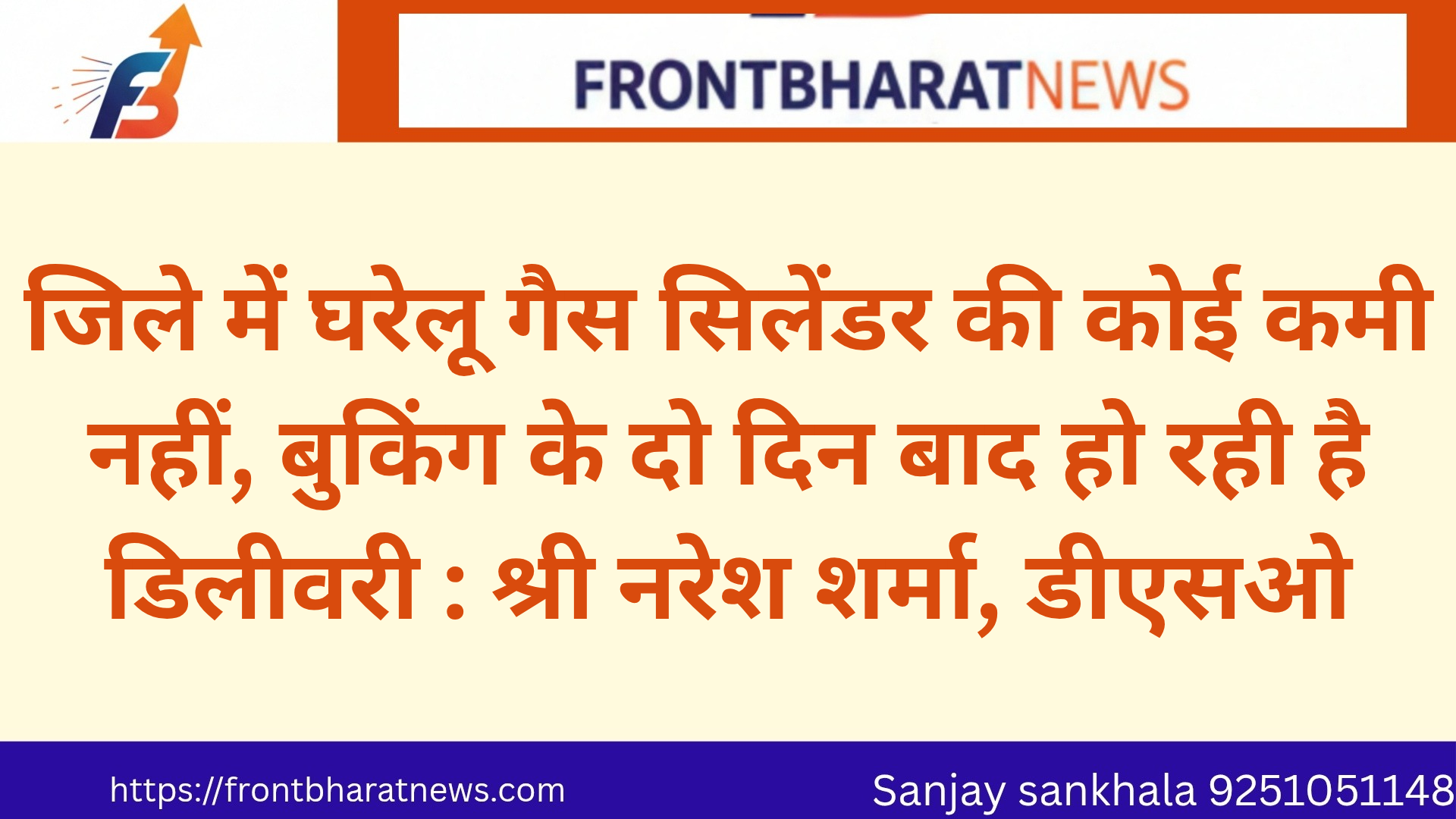 बीकानेर, 13 मार्च । जिले में घरेलू एलपीजी गैस सिलेंडरों की आपूर्ति पूरी तरह सामान्य है तथा उपभोक्ताओं को बुकिंग के लगभग दो दिन बाद सिलेंडर की डिलीवरी सुनिश्चित की जा रही है। शुक्रवार को यह जानकारी जिला रसद अधिकारी नरेश शर्मा ने दी।