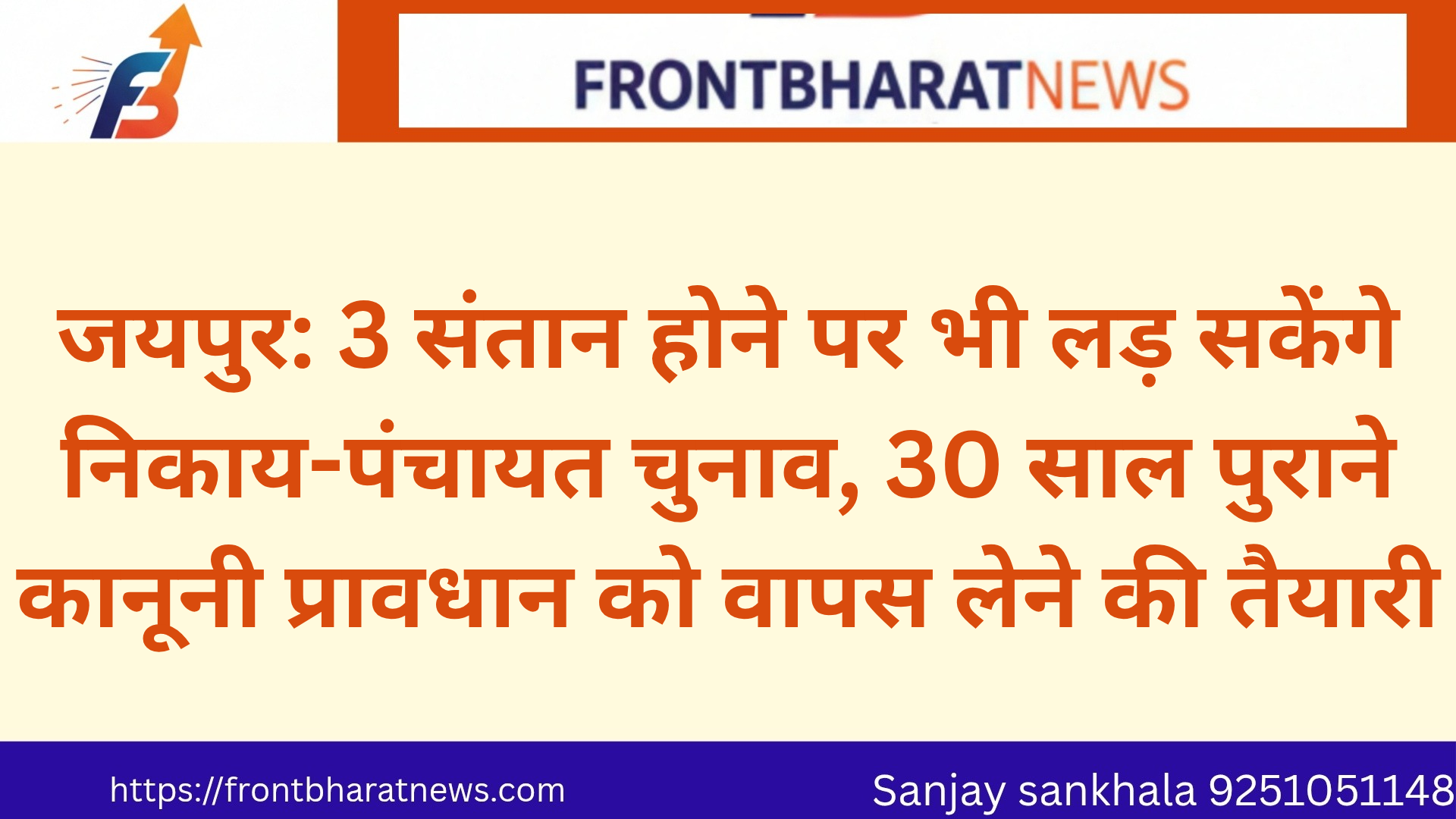 जयपुर: 3 संतान होने पर भी लड़ सकेंगे निकाय-पंचायत चुनाव, 30 साल पुराने कानूनी प्रावधान को वापस लेने की तैयारी