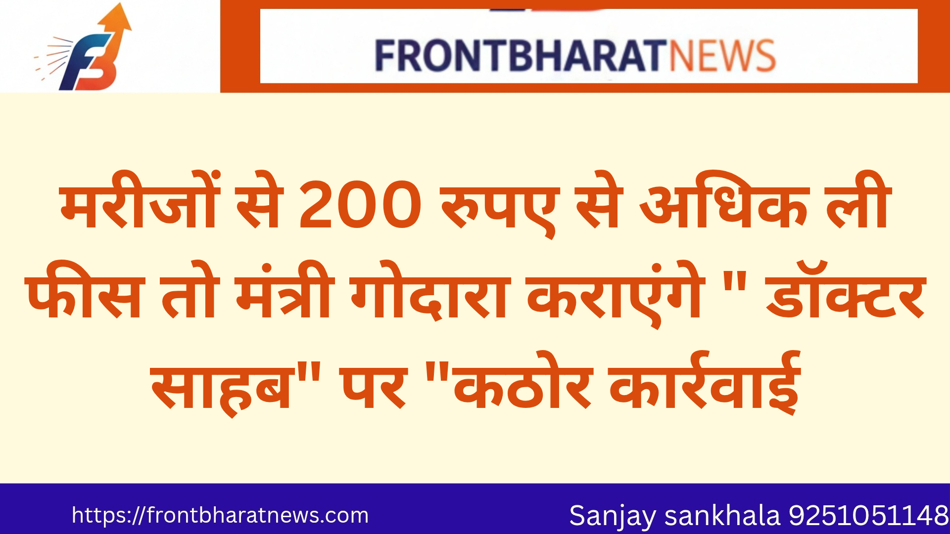 मरीजों से 200 रुपए से अधिक ली फीस तो मंत्री गोदारा कराएंगे ” डॉक्टर साहब” पर “कठोर कार्रवाई