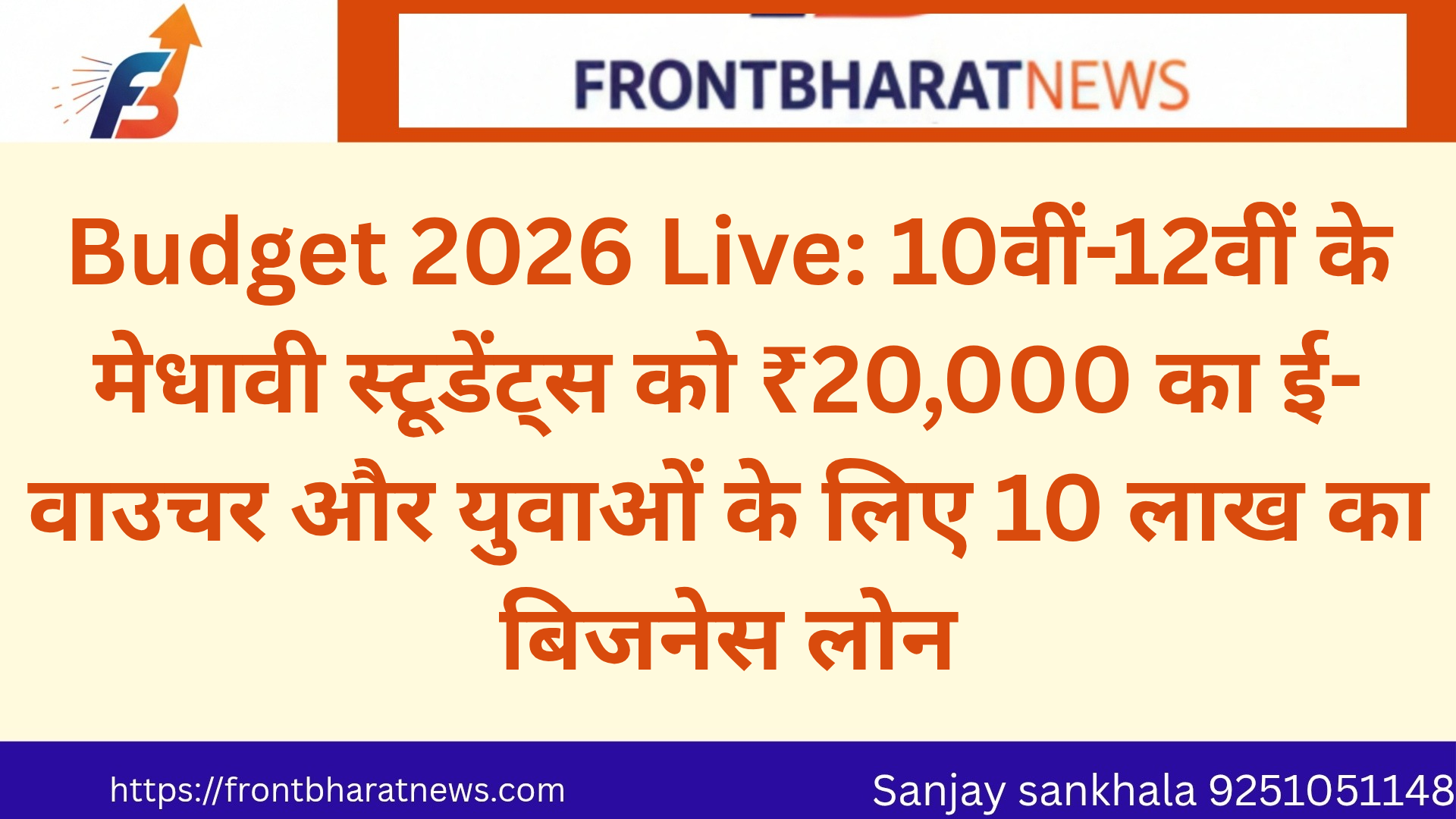 Budget 2026 Live: 10वीं-12वीं के मेधावी स्टूडेंट्स को ₹20,000 का ई-वाउचर और युवाओं के लिए 10 लाख का बिजनेस लोन