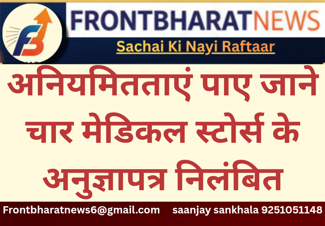 अनियमितताएं पाए जाने चार मेडिकल स्टोर्स के अनुज्ञापत्र निलंबित