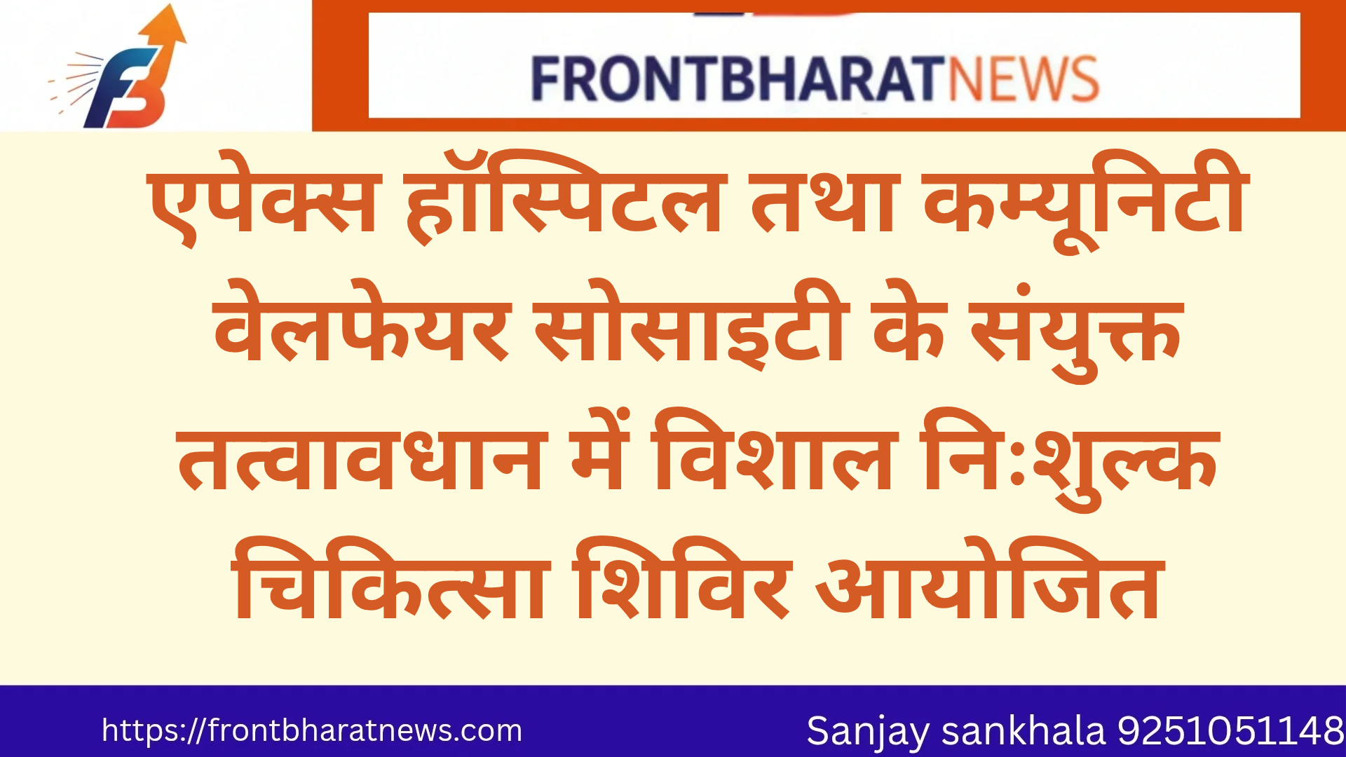 एपेक्स हॉस्पिटल तथा कम्यूनिटी वेलफेयर सोसाइटी के संयुक्त तत्वावधान में विशाल निःशुल्क चिकित्सा शिविर आयोजित