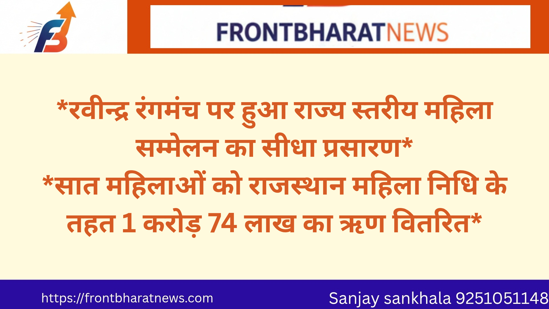 रवीन्द्र रंगमंच पर हुआ राज्य स्तरीय महिला सम्मेलन का सीधा प्रसारण* *सात महिलाओं को राजस्थान महिला निधि के तहत 1 करोड़ 74 लाख का ऋण वितरित December 19, 2025 No Comments Read More »