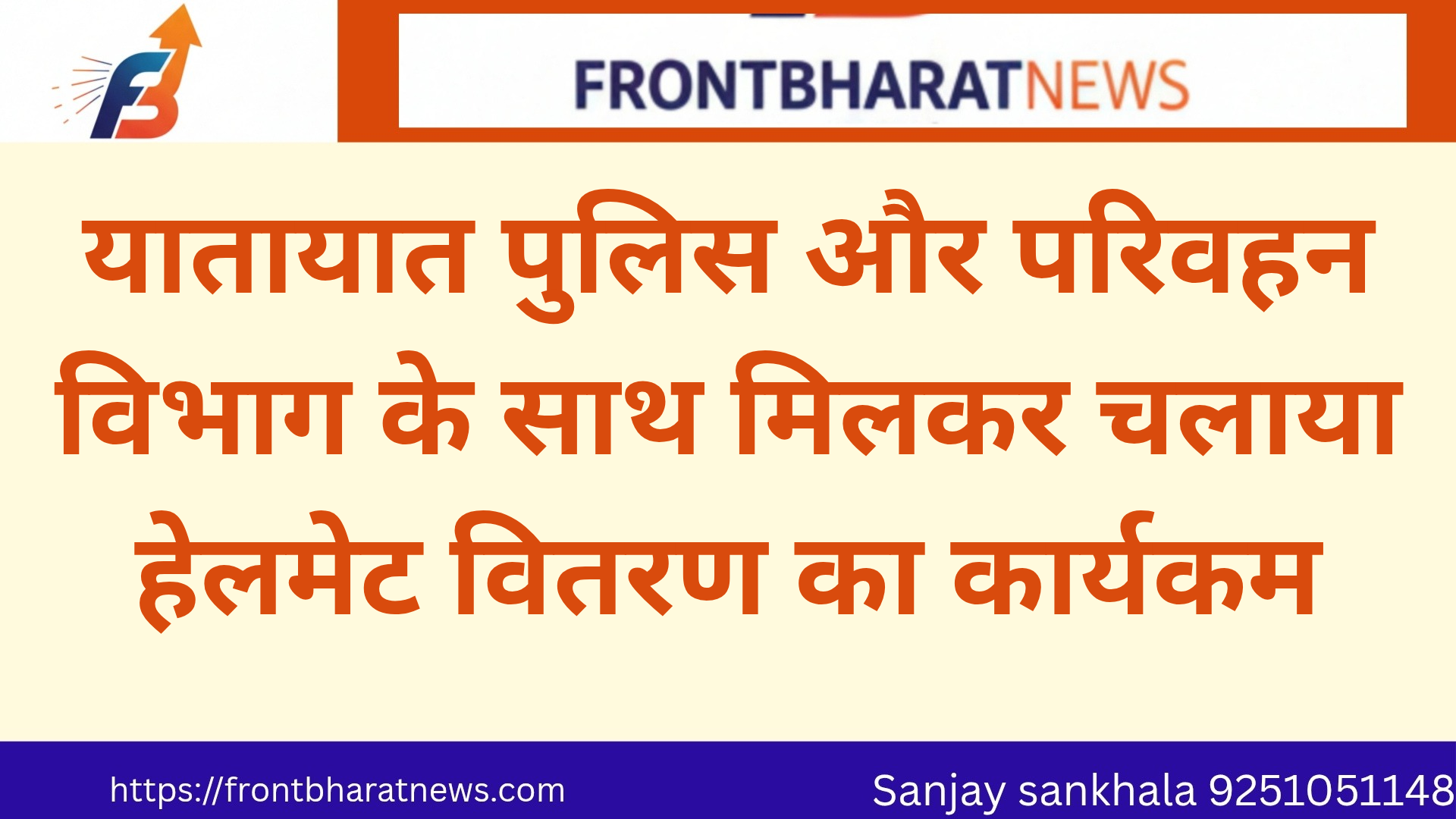 यातायात पुलिस और परिवहन विभाग के साथ मिलकर चलाया हेलमेट वितरण का कार्यकम January 4, 2026 No Comments Read More »