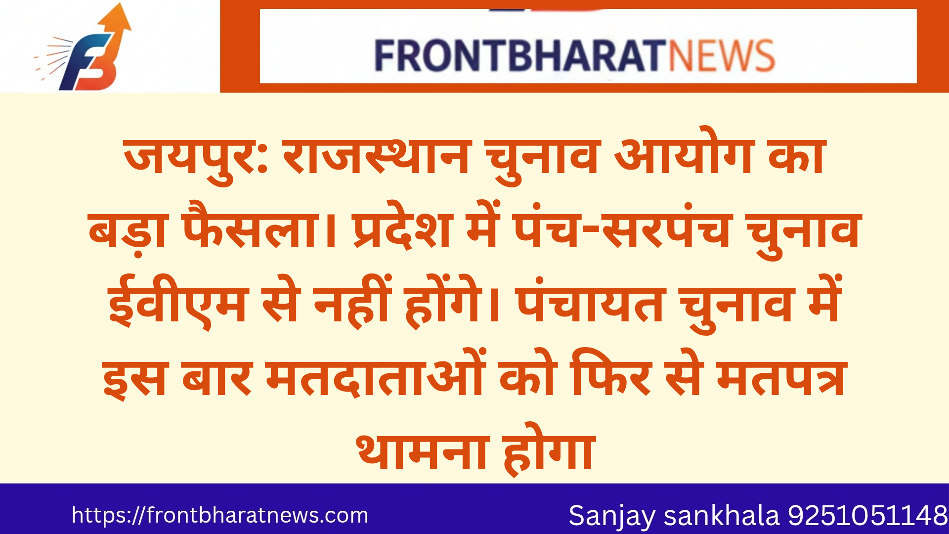 जयपुर: राजस्थान चुनाव आयोग का बड़ा फैसला। प्रदेश में पंच-सरपंच चुनाव ईवीएम से नहीं होंगे। पंचायत चुनाव में इस बार मतदाताओं को फिर से मतपत्र थामना होगा January 8, 2026 No Comments Read More »