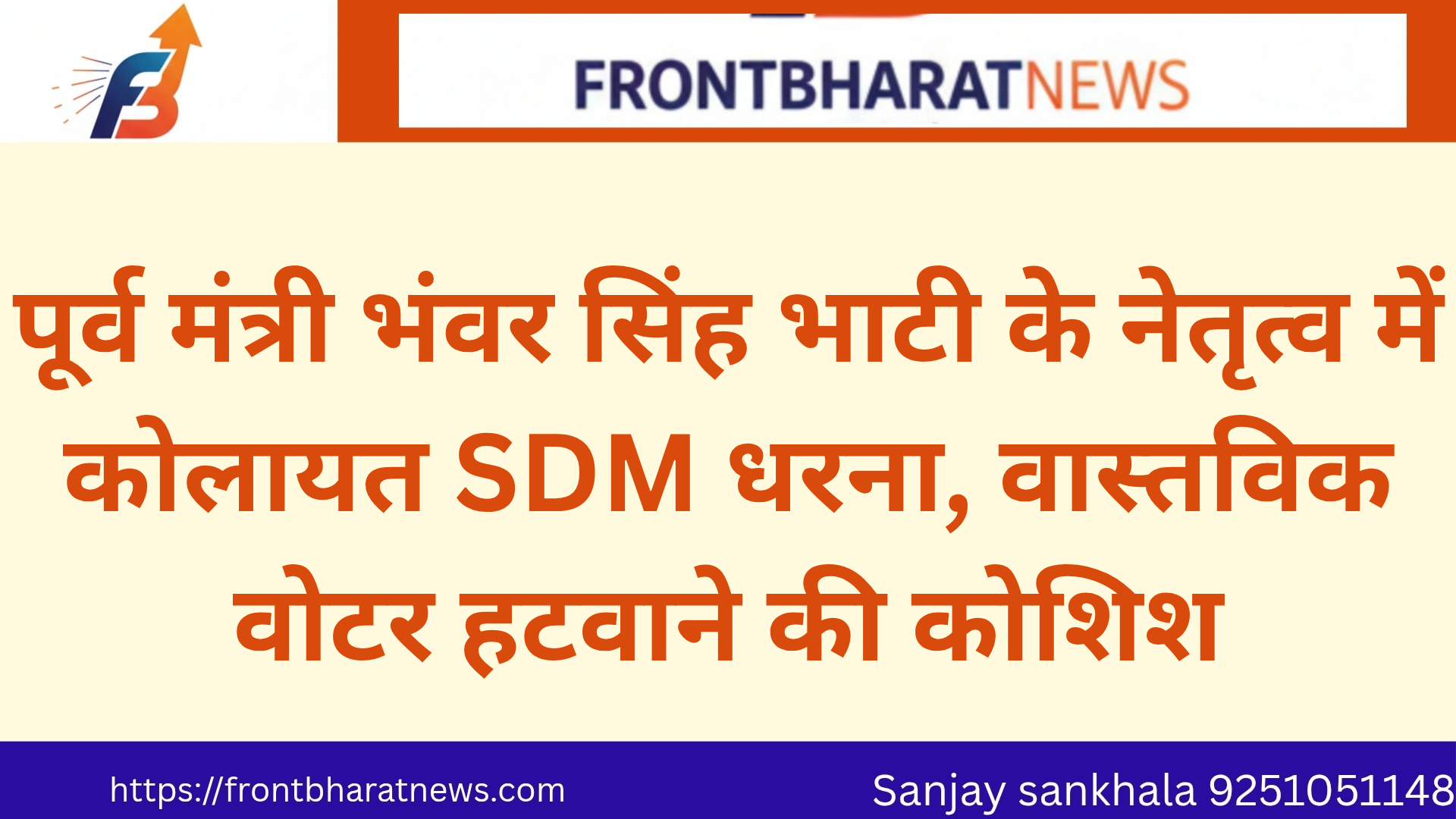 पूर्व मंत्री भंवर सिंह भाटी के नेतृत्व में कोलायत SDM धरना, वास्तविक वोटर हटवाने की कोशिश
